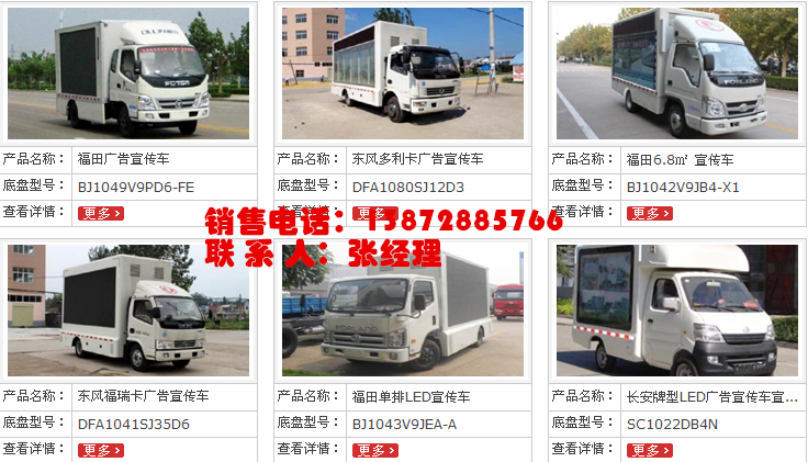 LED廣告宣傳車有:福田L(fēng)ED廣告宣傳車、江淮LED廣告宣傳車、東風(fēng)LED廣告宣傳車等;提供LED廣告宣傳車、LED廣告車、LED移動廣告車的詳細(xì)配置及報價。13872885766 張經(jīng)理。