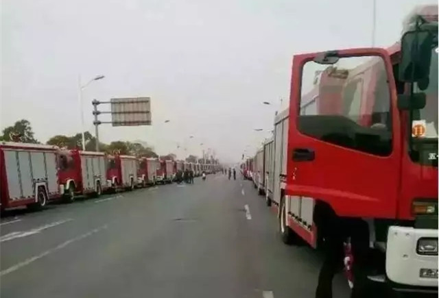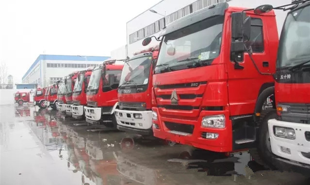 115臺(tái)慶鈴五十鈴泡沫消防車(chē)和發(fā)車(chē)場(chǎng)景圖