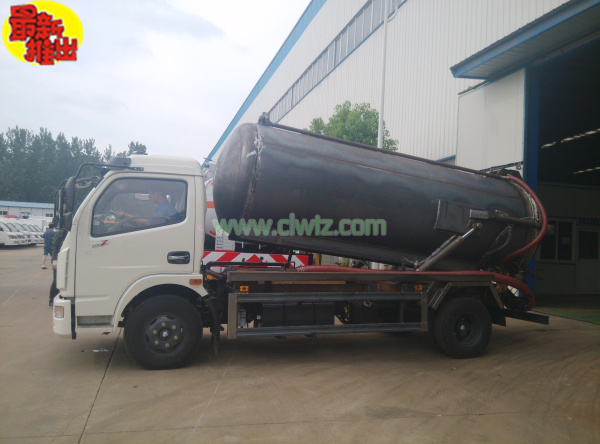 清洗吸污車排卸作業(yè):將吸污膠管朝向蓄污池內(nèi)。將四通閥門后柄拉至與地面平行,開啟防溢閥,使其手柄與管路軸線平行即可。將變速器掛入空擋,再次起動發(fā)動機,分離離合器,將取力器開關(guān)向后拉即掛檔取力,真空泵開始運轉(zhuǎn)。罐體內(nèi)污液排卸完后,駕駛應(yīng)及時將取力器操縱柄向前推即脫檔,真空泵停止運轉(zhuǎn)。將加油箱直通旋塞旋柄板與進郵箱軸線平行即關(guān)閉,沖洗膠管后,將吸污車駛離作業(yè)點。