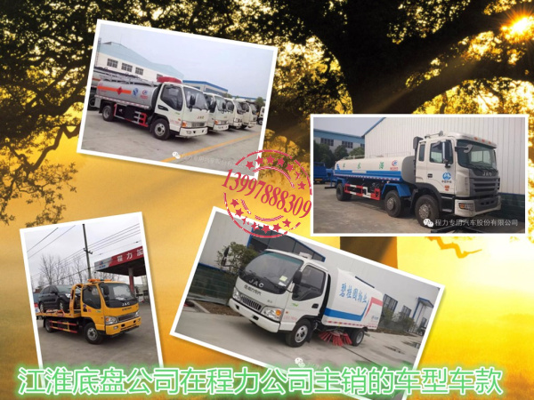 江淮底盤公司與程力專汽公司同前進(jìn)——自從江淮事業(yè)部在程力入住以來,逐漸完善其在公司的車型布局,目前已基本覆蓋了程力所有的車型。其中最為常用的包括加油車(程力首款飛機加油車)、防爆車、清障車、售貨車、舞臺車、廣告車、垃圾車、冷藏車、掃地車、灑水車、高壓清洗車、平板運輸車和高空作業(yè)車。以上車型都是在程力有自己的公告并且銷售相當(dāng)好的車型。