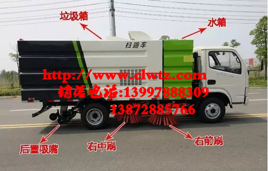 掃路車裝有四個掃刷,后置吸嘴,左、右前掃刷將角落的垃圾由外向內,集中掃向中刷能清掃到的范圍,中刷將垃圾清掃至吸嘴前方,由吸嘴把垃圾吸入到垃圾箱內存放。