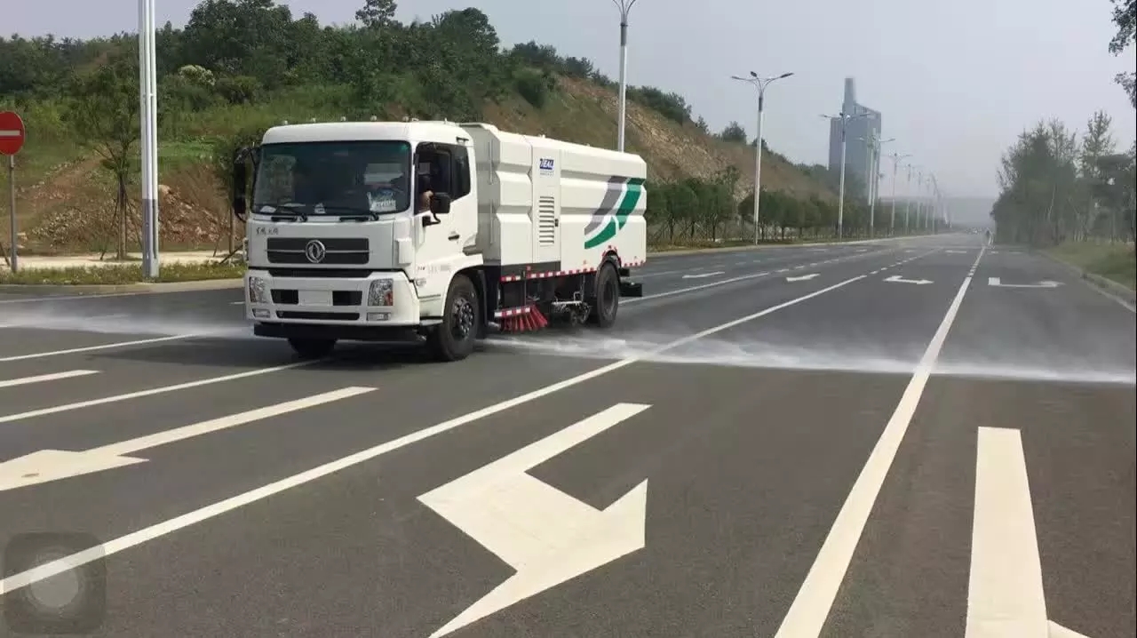 如今烈日當空,路面溫度居高不下。如果單憑人力去清掃維護路面,勢必會把人們熱中暑,而且效率也低,這時清洗掃路車就要發揮它的作用了。