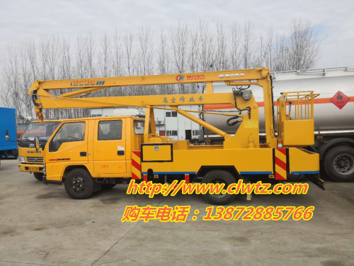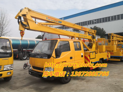 對于還不太了解江鈴14米高空作業(yè)車的客戶,再為大家詳細(xì)一下這款車的配置:江鈴雙排座駕駛室,江鈴五十鈴85KW,115馬力,7.00鋼絲胎,油剎,五檔變速箱,前橋2噸,后橋3.5噸,帶原廠ABS,排氣制動,原廠空調(diào)。最大作業(yè)高度:14米。