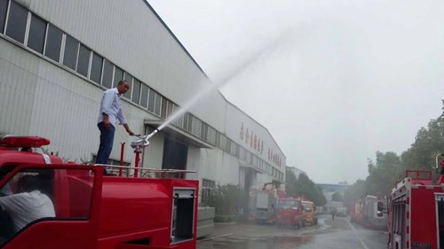 4、機(jī)動靈活,駕駛員一人即可操作完成:在使用中發(fā)動車輛到達(dá)指定的位置后,車輛不要熄滅,駕駛室即可到車頂去操作高壓水炮,該水炮可調(diào)節(jié)成柱狀或者霧狀,射程大于30米。如果車輛到達(dá)不了的地方,要以利用車輛配備的消防水帶連接車輛的消防栓,用直流水槍噴射,射程大于30米。