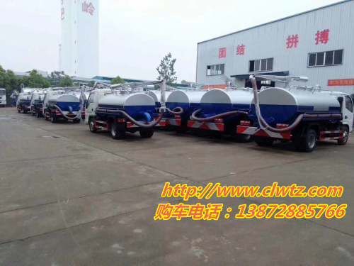 東風5方吸糞車:上裝由罐體、取力器、傳動軸、真空吸污泵、水氣分離器、多路換向閥、吊桿、糞罐、放糞閥、吸糞槍、清水箱、視糞窗、真空壓力表、管網(wǎng)系統(tǒng)等組成。底盤配置: 5方東風餐廚垃圾車采用朝柴102馬力/全柴115馬力發(fā)動機,1730單排駕駛室,7.00R16鋼絲胎,氣剎、ABS、五檔變速箱,成排的吸糞車整裝待發(fā)。