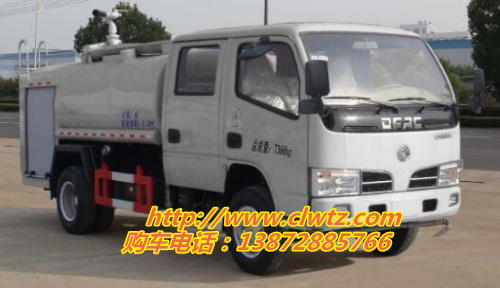多功能消防灑水車可稱綠化噴灑車,是在東風原裝EQ1070DJ3BDF底盤基礎上加裝上裝部分而成,外形尺寸為:6270×1980×2900,2650,發動機匹配朝柴102馬力或全柴115馬力,3308軸距,罐體容積:3-4噸,國五排放,有環保有免征,整車由消防員乘員室和車身兩大部分組成,乘員室為原裝雙排,可乘坐2+3人,該車為內倉罐結構,車身前部為水罐+器材箱,后部為泵房,裝備了上海雄真消防設備有限公司生產CB10/20-XZ型消防泵,額定流量20L/S,車頂安裝成都威斯特消防機械有限公司生產的PS20W型車用消防炮。有效射程55米左右。
