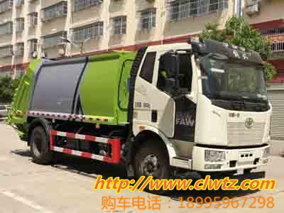 壓縮式垃圾車:采用機,電,液聯動控制系統,電腦控制及手動操作系統,通過填裝器和推鏟等裝置自動控制系統,實現垃圾倒入,壓碎或壓扁,并將垃圾擠入車廂并壓實和推卸。實現垃圾倒入污水全部進入污水廂,解決了垃圾運輸過程中的二次污染的問題。壓縮式垃圾車后掛桶翻轉機構或垃圾斗翻轉機構,作業自動化,垃圾收集方式簡便,高效。