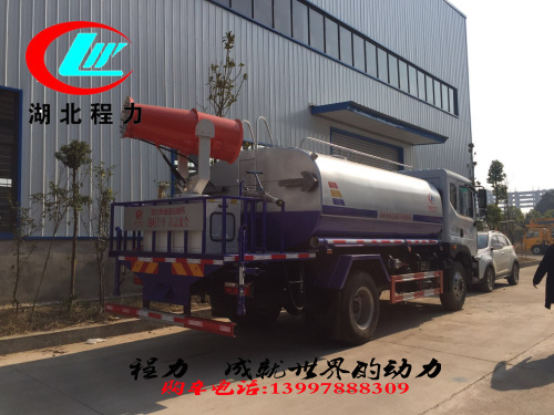 東風多利卡D9新款駕駛室,采用康機180六缸發動機,4500軸距,八檔變速箱,3.6噸前橋,9噸后橋,10.00R鋼絲胎,帶原裝空調,嚴格按照公司尺寸生產,可裝水12噸,帶前沖后灑,后工作平臺高炮,右位花灑,側噴。有免征,提供全套上戶手續。