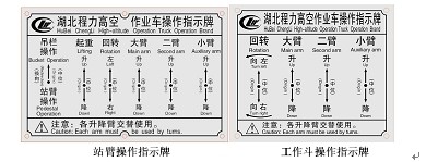 程力高空作業車為你提供高空作業車操作步驟圖介紹: 1.根據如下指示牌先伸出后橫,然后伸出后左右腳及前左右腳