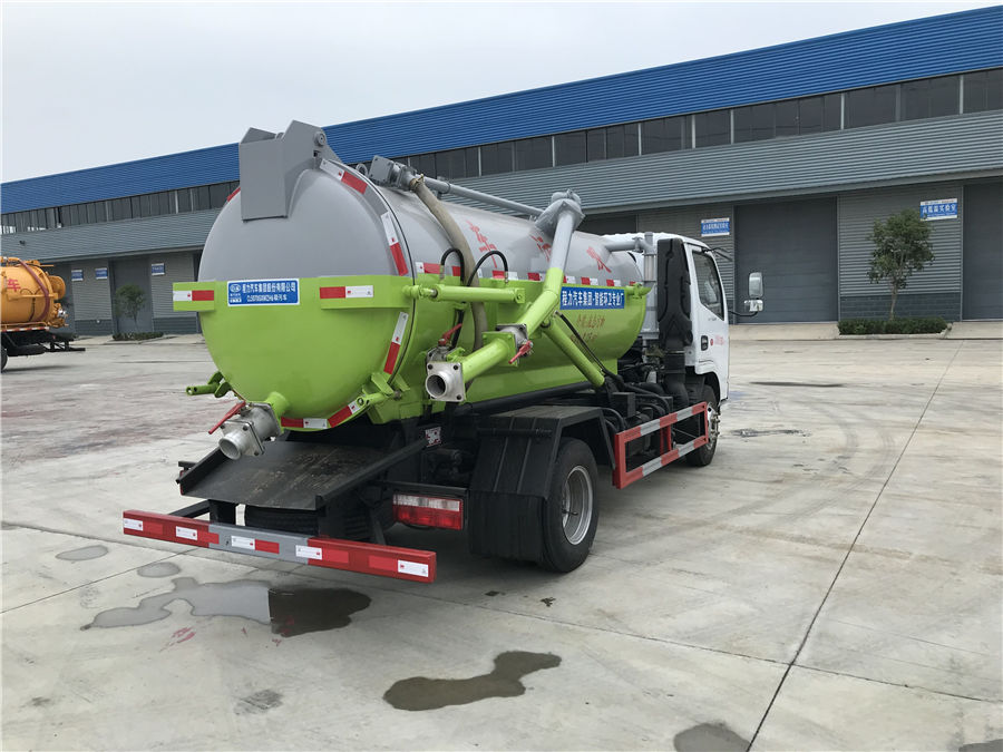 罐體容積:5方,吸污罐體材質(zhì):優(yōu)質(zhì)碳鋼, 板材厚度5mm。配sk-6水循環(huán)吸污泵或8噸油泵,垂直吸程:9-10米,由取力器、傳動(dòng)軸、專用真空吸污泵、高壓成型罐體、多路換向閥、吸污管道,管網(wǎng)系統(tǒng),防溢閥門(mén),102口徑鋁合金球閥,可視視糞管組成,8米橡膠鋼絲吸污管一根、罐體兩邊安裝液壓缸帶舉升功能,可以罐體舉升45度,后蓋液壓缸液壓打開(kāi),鎖緊裝置一套,排泄更干凈。