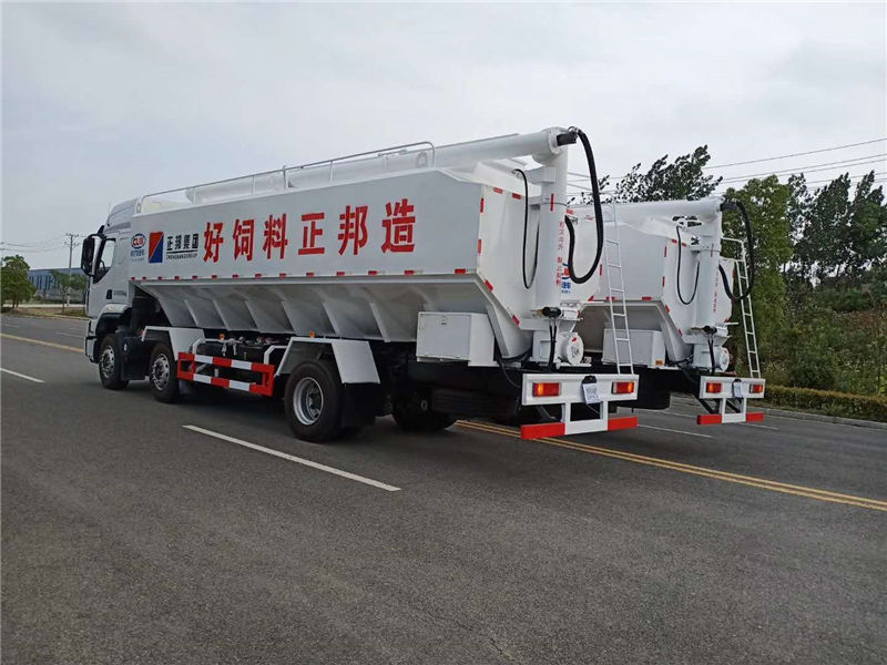 整車備注:該車卸料方式:電動絞龍螺旋輸送卸料;后部不可整體開啟;貨箱底板至活動硬頂距離2300mm;罐體外形尺寸(mm):8000×2460×2300;罐體有效容積:28.28立方米;運輸介質(zhì):膨化及顆粒飼料,粉料;密度:500公斤/立方米;側(cè)防護和后防護材料均為Q235,側(cè)防護螺栓連接,后防護焊接連接,后部防護斷面尺寸(mm):120×80,后部防護離地高度(mm):500;安裝具有衛(wèi)星定位功能的行駛記錄儀;ABS型號/企業(yè):ABS-E 4S/4M/威伯科汽車控制系統(tǒng)(中國)有限公司,CM4XL-4S/4M/廣州瑞立科密汽車電子股份有限公司;發(fā)動機YCS06245-60A和YCS06270-60對應(yīng)的油耗值均為(L/100km):28.77;該車專用裝置由飼料罐和絞龍組成,僅用于糧食收集及運輸;隨底盤選裝保險杠,翼子板,選裝后視鏡,選裝車門下飾板,選裝臥鋪側(cè)窗,選裝綠玻璃,選裝平頂駕駛室,選裝導(dǎo)流罩;選裝液壓絞龍螺旋輸送結(jié)構(gòu).