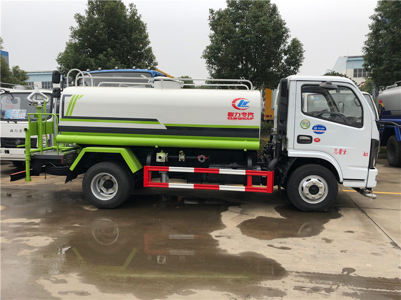 整車備注:1、該車僅選用3308mm軸距,罐體有效容積為4.04立方米,罐體尺寸為(mm):3400×1600×1100,3300×1600×1100。2、防護材料:Q235B碳鋼,連接方式:左右側面及后下部防護均采用焊接連接,后部防護斷面尺寸(mm):120×50,后部防護離地高度(mm):430。3、ABS型號/廠家:ABS/ASR-12V-4S/4M/襄陽東風隆誠機械有限責任公司。4、專用裝置:罐體,主要用于路面灑水及園林綠化。5、隨底盤選裝駕駛室。