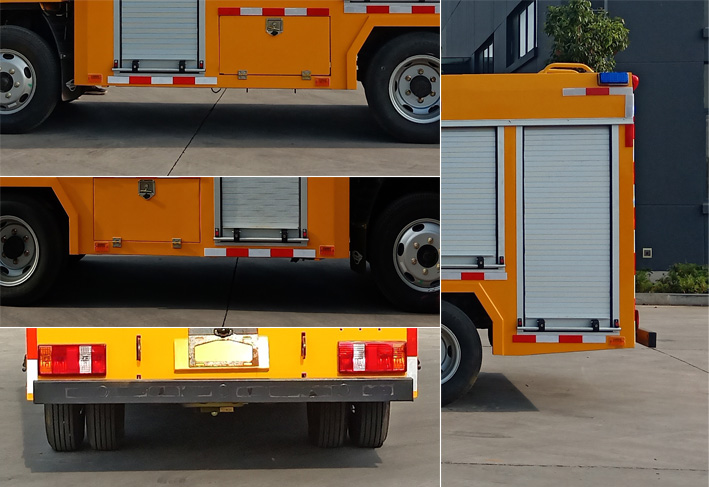 整車備注:廂體內專用裝置是發電機機組,遠距離輸電裝置,電焊機以及應急搶險搶修時必備的光源,氣源,電源設備等工具;側面防護及后面防護裝置采用Q235碳鋼,裙邊結構構成,后防護斷面尺寸(mm):100×50,離地高度:400mm;BS系統型號:CM4XL-4S/4M,ABS系統生產廠家: 廣州瑞立科密汽車電子股份有限公司;隨底盤選裝駕駛室。后部選裝爬梯。
