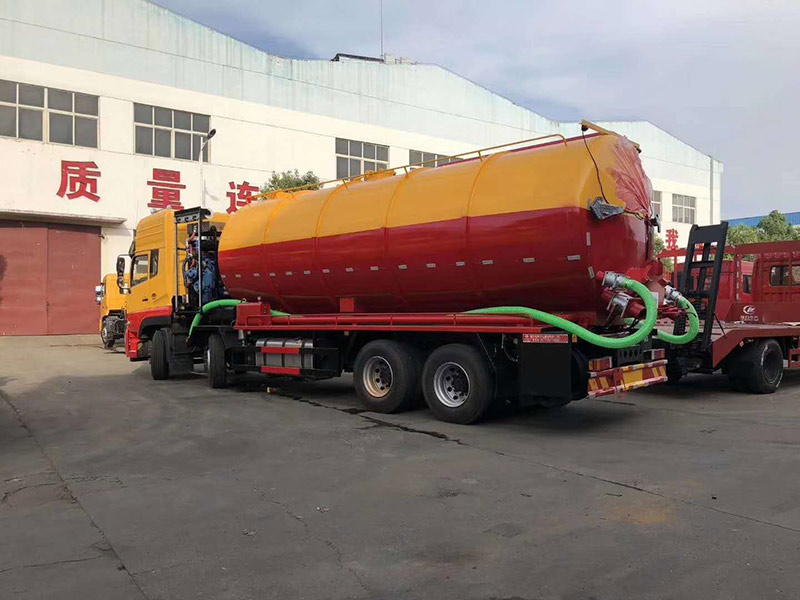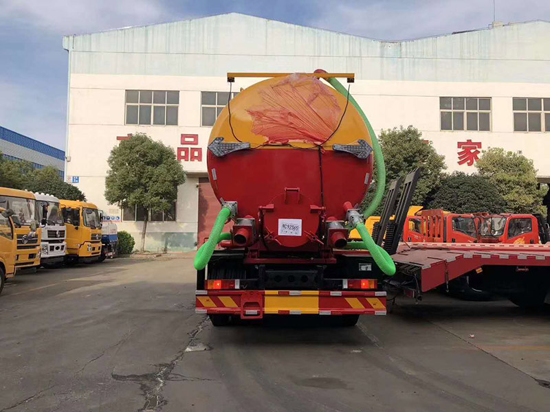 整車備注:隨底盤選裝駕駛室,整車長/前懸/軸距/后懸對應關系為:(mm):11990/1500/1850+4600+1350/2690;11990/1500/1850+4600+1400/2640;11990/1500/2050+4400+1350/2690;11990/1500/2050+4400+1400/2640;該車是主要用于吸除污濁物和清洗作業的罐式專用作業車;主要專用裝置為真空泵和罐體.罐體尺寸為直段長×直徑(mm):7100×2400,6400×2400,其中罐體前端為清水罐(外形尺寸長2600,2400mm);后端為污水罐(外形尺寸長4500,4000mm),兩罐獨立,且不能同時滿載,清洗功能時用清水罐,吸污功能時用污水罐.污水罐有效容積18.37立方米,介質:液態污物,密度:800千克/立方米;清水罐有效容積10.5立方米,介質:水,密度:1000千克/立方米.側防護采用Q235材質螺栓連接,后防護采用Q235材質,連接方式螺栓連接,后部防護斷面尺寸(mm):50×200,后部防護離地高度(mm):500.ABS生產廠家:東科克諾爾商用車制動系統(十堰)有限公司,型號:3631010-C2000.